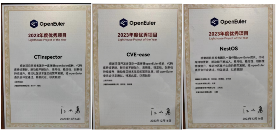 会上,天翼云荣获2023年度openEuler领先商业实践和2023年度openEuler社区突出贡献单位双重大奖;天翼云操作系统团队斩获CTinspector、CVE-ease、NestOS三项2023年度优秀项目奖。天翼云强大的技术实力和市场表现再获业界权威认可。