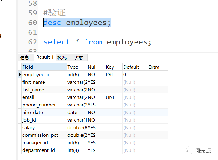 验证,查询员工表的表结构