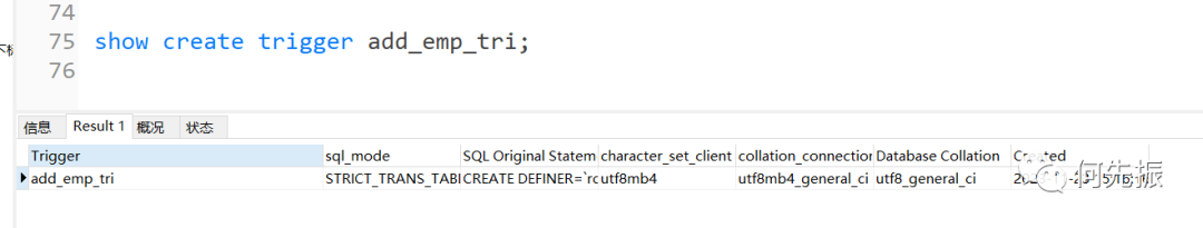 方式2:查看当前数据库中某个触发器的定义