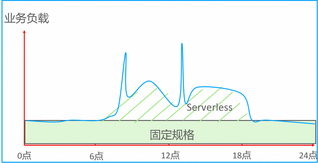 除了对外部业务的支持,PolarDB Serverless还解决了伊对内部业务的需求。例如,财务、审核、客服等业务在白天的工作时间段访问高峰期,而且往往会出现尖峰的业务访问压力,比如审核系统中有时存在多人并发审核的情况,拉取相同数据,审核后做回传,高并发下数据库资源不足时速度非常慢(通常1分钟),严重影响体验,但是如果将数据库实例规格调整过大满足尖峰时刻需求时,又会导致在平时的资源严重浪费,成本过高;为了应对此需求,PolarDB在2C或4C固定规格的集群上开启了Serverless功能,当尖峰压力来临时,PolarDB可以在1s内完成资源弹升,将业务处理时长从1分钟降低为3s内,很好满足了应用体验,同时没有带来更高的成本。