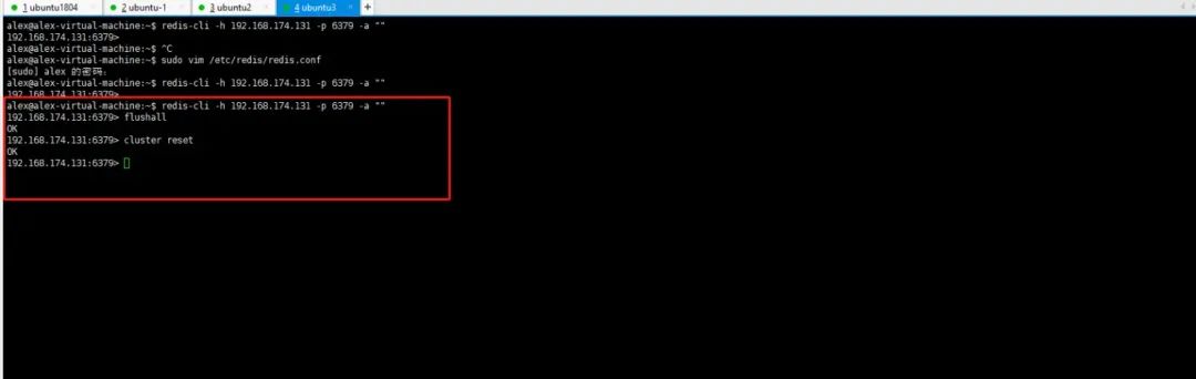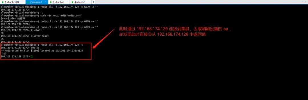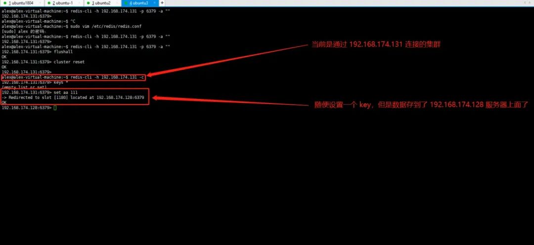alex@alex-virtual-machine:~$ redis-cli -h 192.168.174.131 -c # 连接的 31 号服务器
