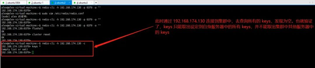 alex@alex-virtual-machine:~$ redis-cli -h 192.168.174.130 -c # 通过 30 号服务器连接集群