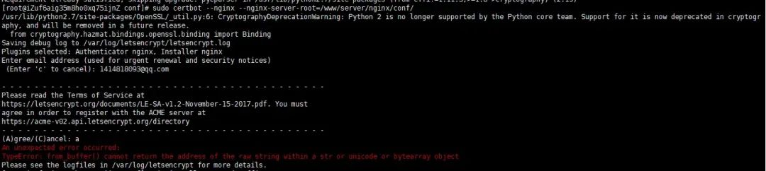 安装 certbot 客户端工具 (此流程正常),安装过程中,该直接回车的就回车,该直接选 Yes 的输入 Y 然后回车