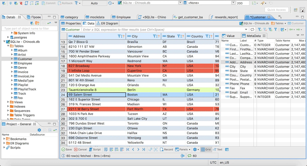 SQL 语句:通过内置的 SQL 编辑器,用户可以撰写、编辑和运行 SQL 查询。它提供了一些有用的机制来更好帮助编写和调试 SQL 语句,包括语法高亮显示、上下文相关帮助和自动补全。