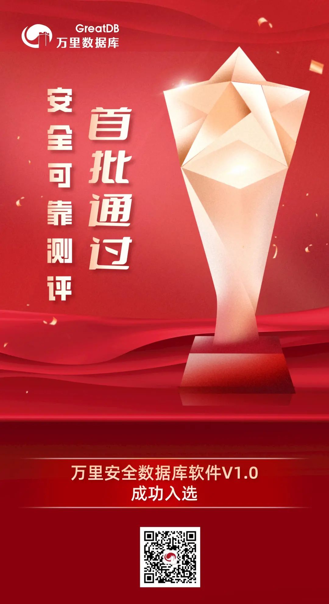其中,万里安全数据库软件V1.0成功入选,安全可靠等级测评为Ⅰ级。
