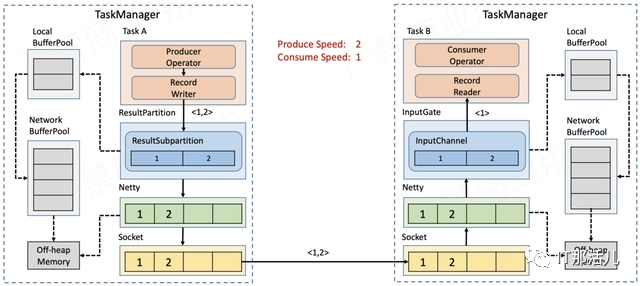 输出缓冲区 resultPartition -> local bufferpool -> network bufferpool 输入缓冲区 inputGate -> local bufferpool -> network bufferpool