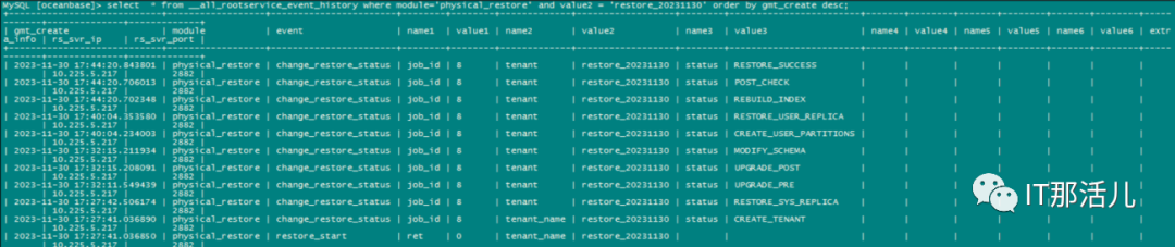 select * from __all_rootservice_event_history where module='physical_restore' and value2 = 'restore_20231130' order by gmt_create desc;