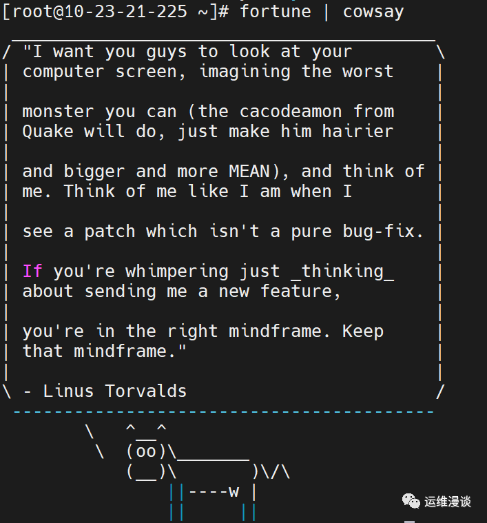 紧接着,我们结合cowsay命令给大家展示一下神奇的现象: