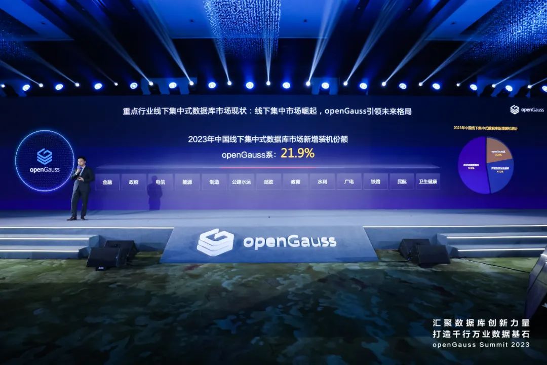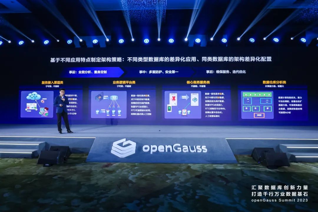 “汇聚数据库创新力量,打造千行万业数据基石”是本次大会的主旨,openGauss 社区理事长胡正策以此为题发表演讲。他表示,openGauss 开源三年多以来,社区企业数增长100倍,开源贡献者增长50倍,版本下载量增加38倍,代码量增长16倍,从2020年6月开源时的130万行发展至今已经2100万行。从DT平台指数看,openGauss 已经成为国内最活跃的开源数据库根社区。未来,openGauss 仍将坚持用户场景驱动,持续进行架构创新,围绕数据库内核高性能、高可用、高智能、高安全,突破关键根技术,构建内核全方位竞争力。大会主论坛上还隆重发布了弗若斯特沙利文的《重点行业数据库应用调研报告》。报告指出,国产集中式关系型数据库满足交易的高复杂度、数据强一致性、高性能、低延时的金融电信等行业OLTP业务场景,集中式数据库在传统线下行业应用市场保持80%以上的份额。数据显示,2023年中国数据库市场线下集中式openGauss系新增市场份额达21.9%,这标志着 openGauss 已跨越生态拐点,正式踏入生态发展期。作为 openGauss 社区的重要成员,云和恩墨创始人兼总经理盖国强联合哈尔滨银行数据中心总经理姜岩带来题为《银行关键系统的选型考量和最佳实践》的演讲。在演讲中姜岩表示,在做数据库系统改造过程中,需要把事前、事中、事后的全部过程考虑清楚,以达成系统架构自主创新改造的工作目标,即安全可信、架构改进、迭代优化。对于银行的数据库系统改造升级,姜岩强调,要基于自身需求全面分析可选择产品,基于不同应用特点制定架构策略。在数据库架构的选择上,集中式数据库通过单机或集群统一存储数据,成熟稳定、维护简单,应用迁移改造成本低,可以平滑沿用原有的技术积累。此外,姜岩还介绍了哈尔滨银行关键业务系统的架构自主创新改造秉承的“改造范围最小化原则、不做业务逻辑改造、验证多种备选方案”策略,并针对系统间适配问题、系统性能问题、迁移实施问题、可靠性设计问题、运维标准化问题给出了具体的应对方案。