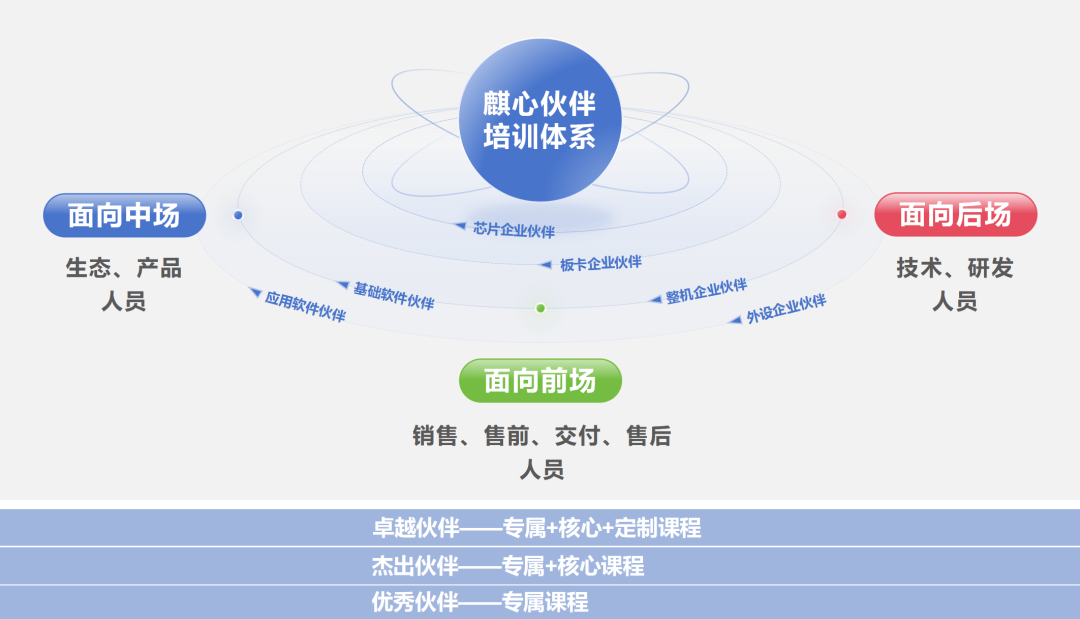 目前,“麒心伙伴”已筹备了面向销售和前场支持人员的麒麟操作系统基础知识、产品使用和产品更新等培训课程,面向产品、研发、生态人员的麒麟操作系统产品路标规划、测试工具、适配工具等培训课程,以及面向技术人员的故障分析、基础运维等培训课程。部分闭门课程也将在近期限时公开邀请,请“麒心伙伴”企业积极关注参与。