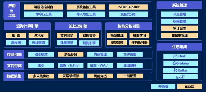 天谋科技的物联网时序数据库 IoTDB 是一款低成本、高性能的时序数据库,技术原型发源于清华大学,自研完整的存储引擎、查询计算引擎、流处理引擎、智能分析引擎,并拓展集群管理、系统监控、可视化控制台等多项配套工具,可实现单平台采存算管用的横向一站式解决方案,与跨平台端边云协同的纵向一站式解决方案,可方便地满足用户在工业物联网场景多测点、多副本、多环境,达到灵活、高效的时序数据管理。