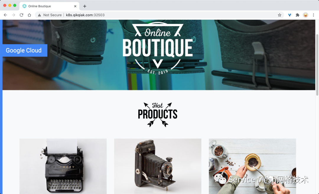 # Clone the repo with all microservices to be deployed$ git clone https://github.com/GoogleCloudPlatform/microservices-demo$ cd microservices-demo# Install the services# 镜像默认是gcr的,需要自行替换可访问的镜像地址$ kubectl apply -n demo -f ./release/kubernetes-manifests.yaml......# Setup istio gateway and virtual services for routing$ kubectl apply -n demo -f ./release/istio-manifests.yamlgateway.networking.istio.io/frontend-gateway createdvirtualservice.networking.istio.io/frontend-ingress createdvirtualservice.networking.istio.io/frontend createdserviceentry.networking.istio.io/whitelist-egress-googleapis createdserviceentry.networking.istio.io/whitelist-egress-google-metadata created