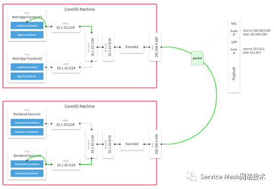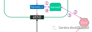 Flannel.1查看数据包的目的ip,从flanneld获得对端隧道设备的必要信息(node节点对应的Mac地址),并对数据包进行封装。