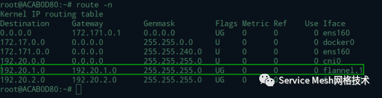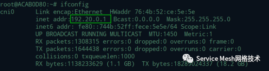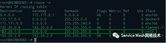 根据最长匹配原则,flannel.1将去往192.20.1.0/24的流量转发到cni0上去。