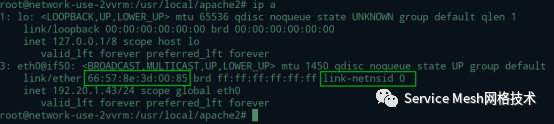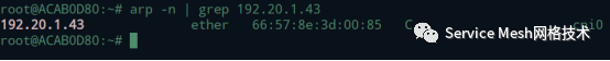 在node节点上通过arp解析可以看出,192.20.1.43的mac地址为 66:57:8e:3d:00:85