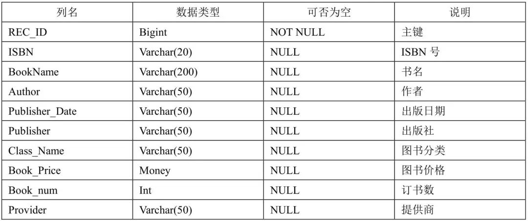 表1 BookSeller_BookInfo书商图书基本信息表