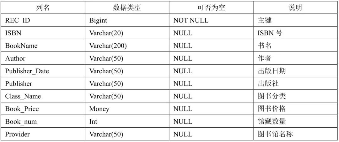 表2 Library_BookInfo图书馆图书馆藏基本信息表