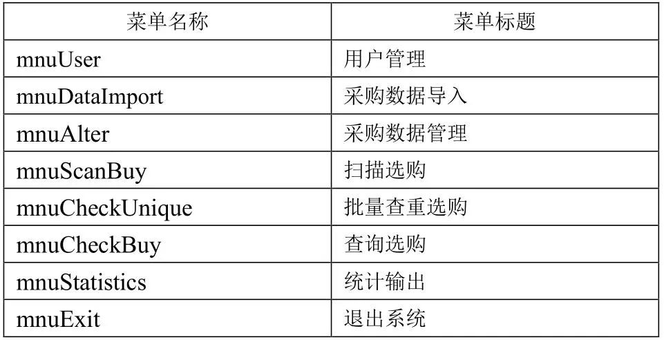表5 主窗体菜单结构