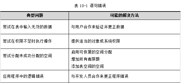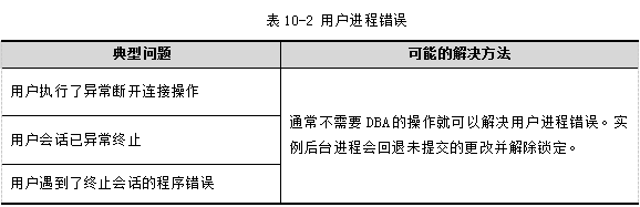 用户进程错误的典型问题与解决办法如表10-2所示。