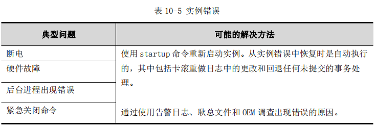 现实工作中有很多情况都可能造成数据丢失,造成数据丢失的主要因素可能是介质故障,如磁盘损坏、磁头碰撞,瞬时强磁场干扰;用户的错误操作;服务器的彻底崩溃;计算机病毒或者不可预料的因素,如自然灾害、电源故障、盗窃等都会造成数据库的多种故障,且解决每种故障的办法也不尽相同。下面罗列一下Oracle中的几种常见故障以及解决办法。