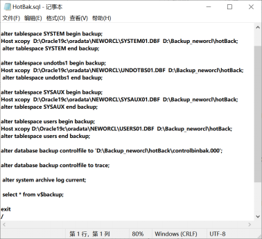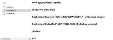SQL> host xcopy D:\ORACLE19C\ORADATA\NEWORCL\SYSAUX01.DBF D:\BACKUP_NEWORCL\HOTBACK;