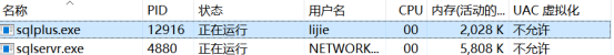 步骤1:查看任务管理器中的初始系统进程,如图2-17所示。观察当前操作系统进程,发现当前使用命令行运行SQL Plus。