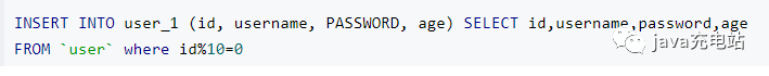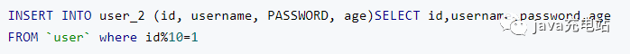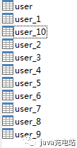 使用取模的思想将主表user的数据分割放在了剩余的10张表里面。