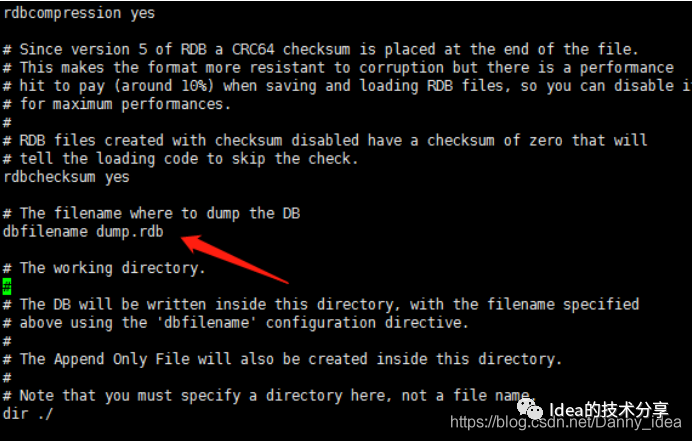 redis里面的这一行主要是用于将数据持久化在redis的dump.rdb文件里面,然后每一次开启redis的时候都会将里面的数据重新加载,进行数据恢复。(dump.rdb的存放位置由下边的dir来标识)