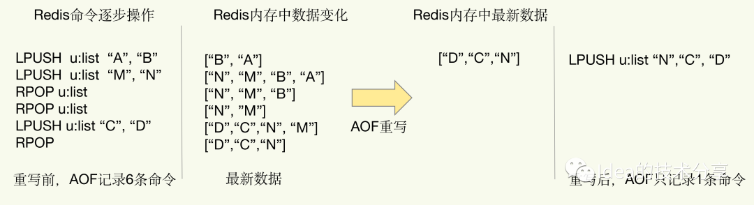 上边在写rdb重写机制的时候有讲到过rdb文件压缩的原理是使用算法将二进制文件进行压缩,而对于AOF来说,它自身是采用去除无效命令的方式来进行空间压缩的。