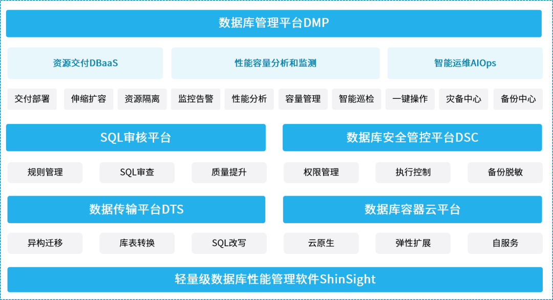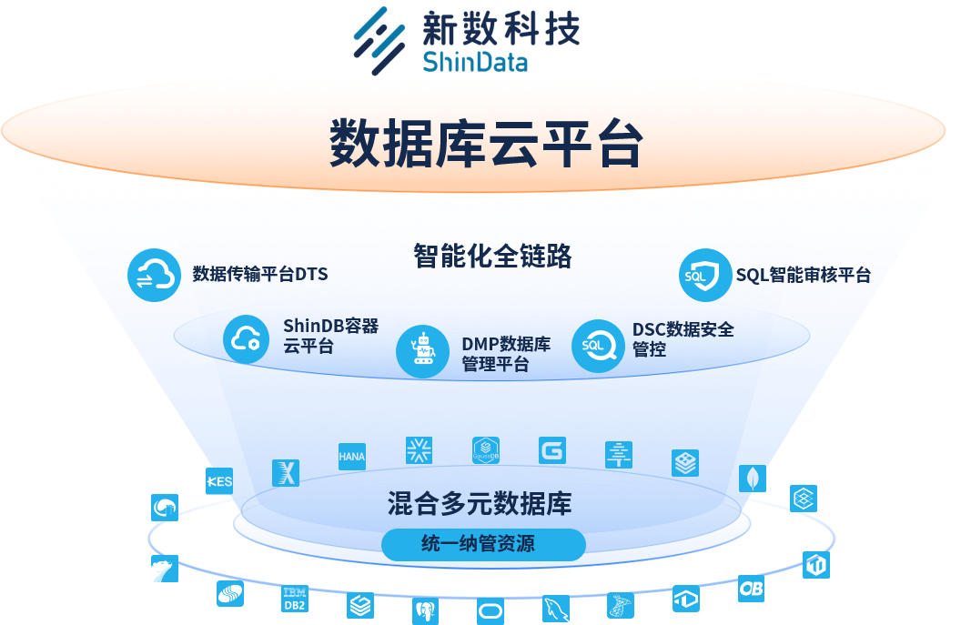 ShinData新数科技是业内数据库云平台软件创新引领企业,产品领域涵盖数据库dbPaaS云管理平台、数据库安全管控平台、数据库容器云平台、数据迁移传输平台和ShinDB数据库解决方案等。广泛应用于金融、制造、能源、零售和通信等行业,为广大企业在新时期云计算、大数据、人工智能等环境下的数据库基础软件转型变革提供持久源动力。