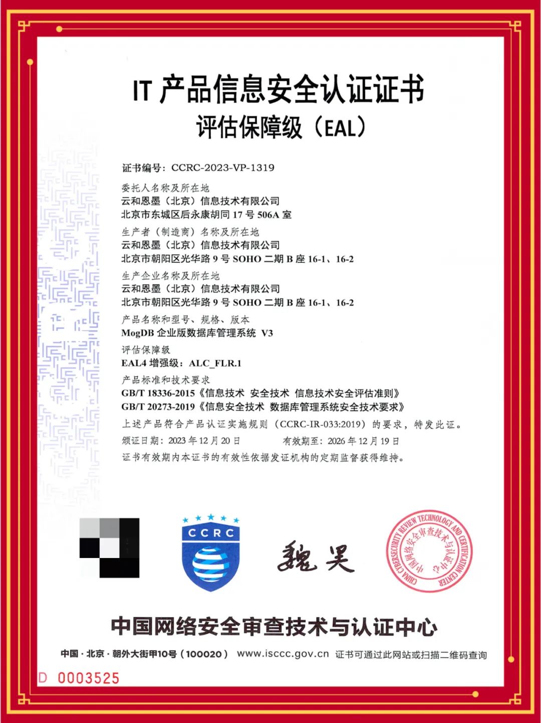 近日,云和恩墨 MogDB 企业版数据库管理系统正式通过中国网络安全审查技术与认证中心(简称:CCRC)的安全评估并获得IT产品信息安全认证EAL4增强级(EAL4+)认证证书。这充分证明了 MogDB 数据库产品的信息安全保障能力已经达到行业领先水平。