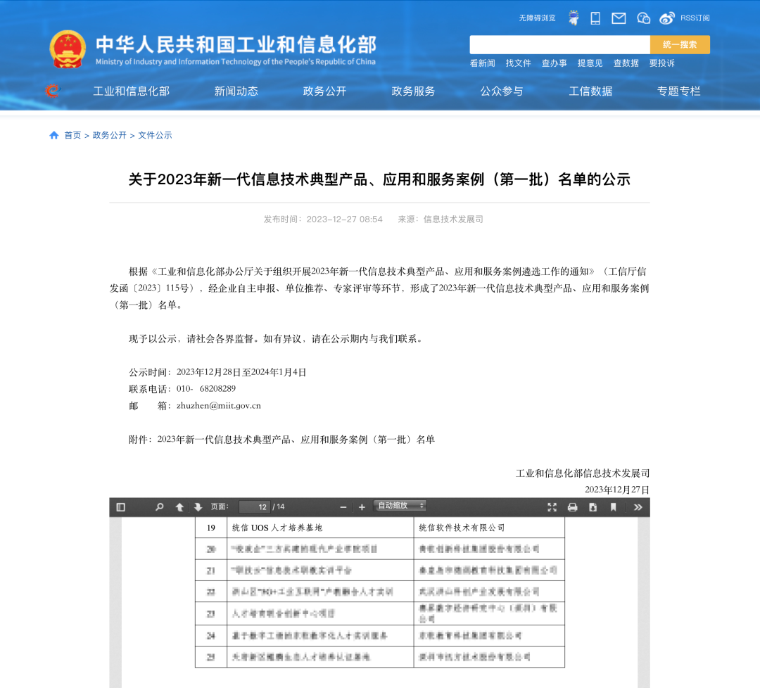 “统信UOS人才培养基地”项目首批入选2023年新一代信息技术典型产品、应用和服务案例名单!👏👏