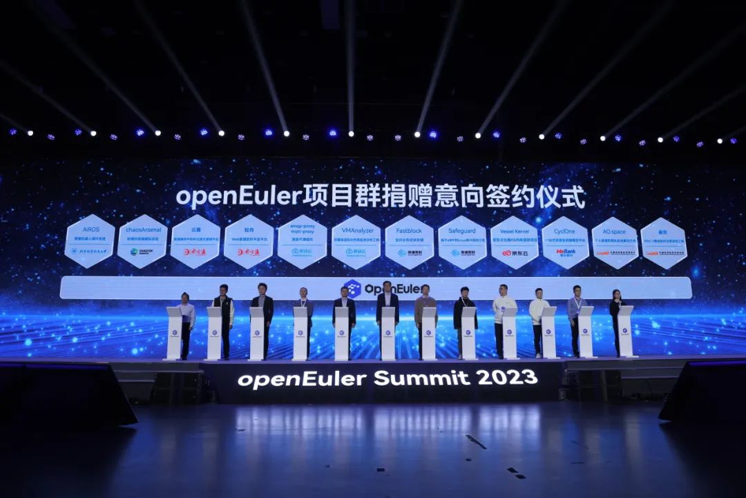 在这个开放、合作、共享的平台上,深信服研发成果Sangfor chaosArsenal正式加入openEuler项目群,并于现场签订捐赠意向。