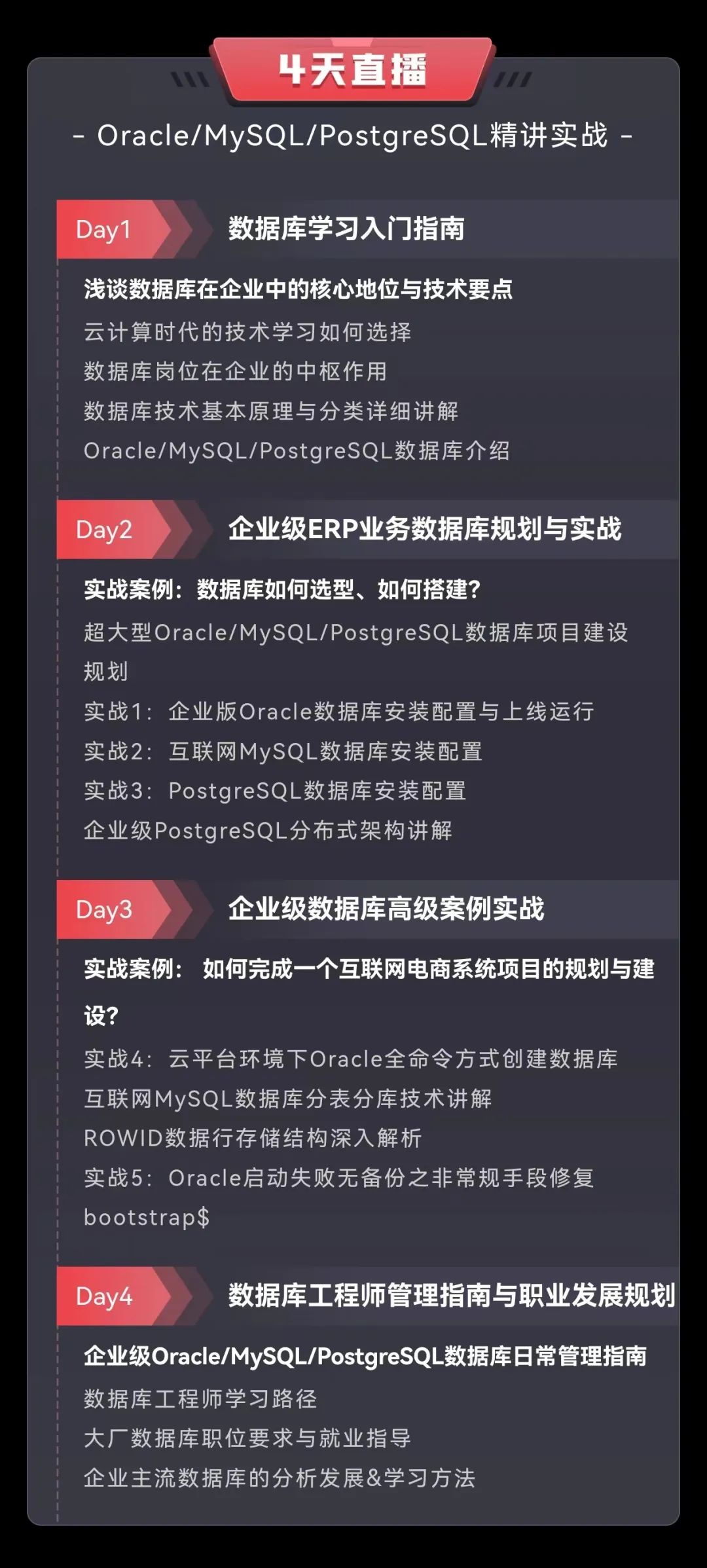 国家数据局成立,数据库人才的市场需求量逐年上升,迫于环境压力,对于学习者也基本不能从市面上看到真正系统的数据库知识,学员普遍自学效率低、效果差,大部分从业者缺少一处数据库氛围浓厚、讲师技术和服务过硬的学习交流营地。常见学习问题有:① 学习数据库需要什么门槛?② 数据库有哪些高效学习途径?③ 数据库工程师的日常工作职责有哪些?④ 数据库求职如何选择 offer?