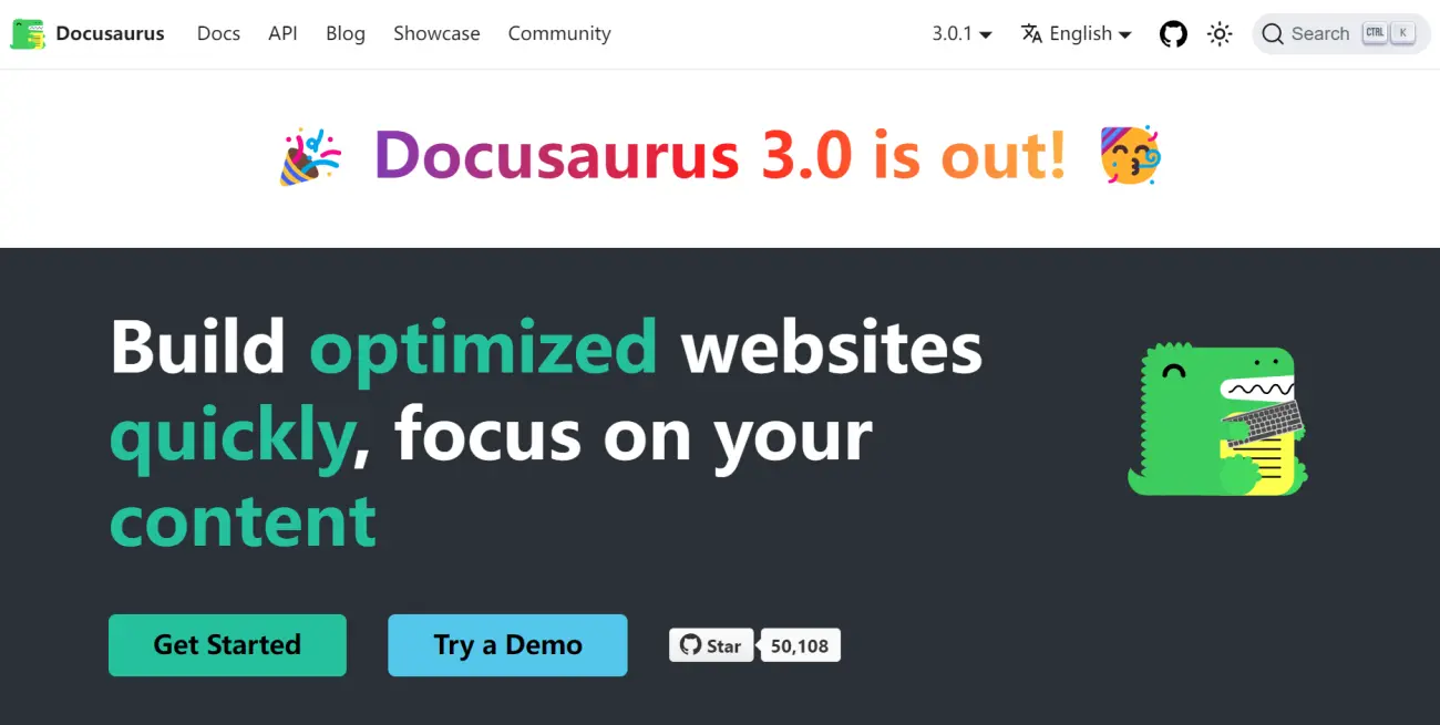 DocusaurusDocusaurus 是一个强大而灵活的文档网站解决方案。它提供直观的界面,轻松构建、部署和管理全面的文档。通过使用 Docusaurus,您可以轻松组织和结构化内容,并享受定制选项,以符合您的品牌形象。无论是用户指南、常见问题解答还是 API 文档,Docusaurus 都为您提供了必要的工具和功能,创建出一个全面且用户友好的文档网站。
