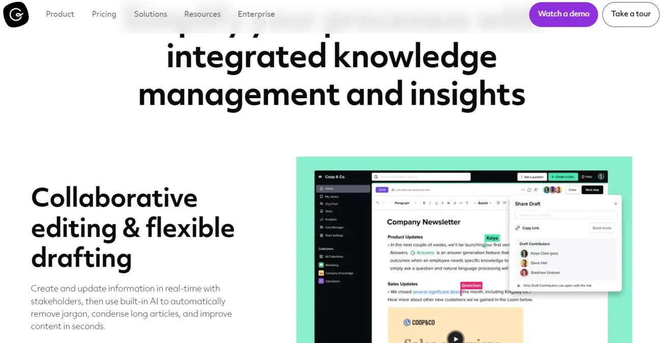 Guru 是一个全面的知识管理解决方案,通过简化业务流程、无缝集成和智能功能,帮助企业更有效地管理和利用其知识资产。通过使用 Guru,企业可以更好地支持员工入职、远程工作和产品销售支持等需求,并提高整体工作效率和客户满意度。