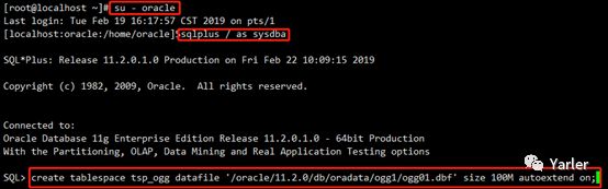 在源库和目标库创建ogg需要的表空间
