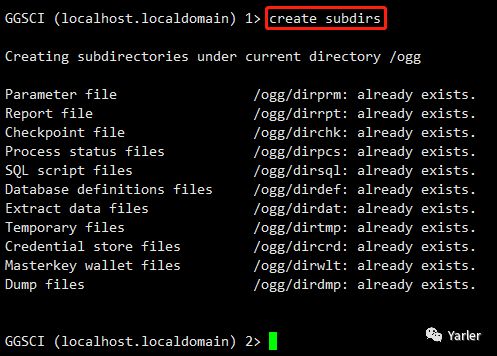 su - oracle cd /ogg ./ggsci create subdirs |