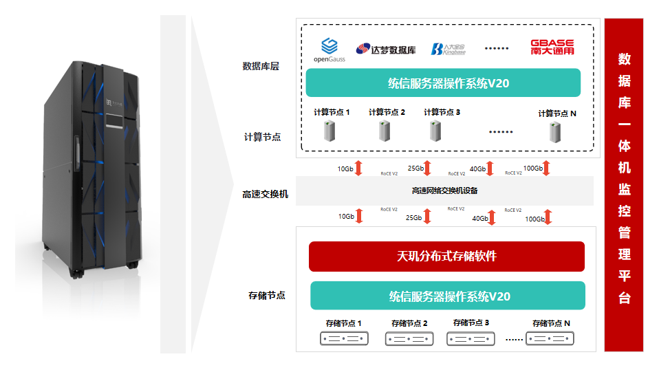近期,天玑科技推出基于统信UOS服务器版V20的数据库私有云平台产品。该产品支持包括达梦、人大金仓、南大通用、openGauss等多种国产数据库,满足企业全栈国产建设要求。通过工程化方法,将数据库运行所需的所有IT基础设备集成在一起,为客户呈现开箱即用的整体解决方案。