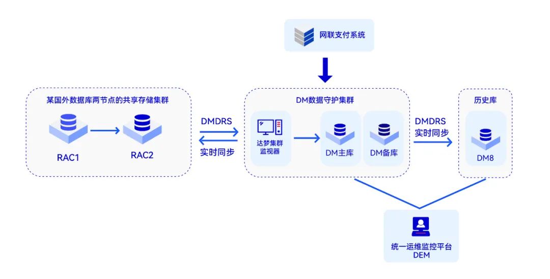 改造前,该系统使用的是国外某主流数据库,在当前国际竞争态势下,不仅信息技术存在安全隐患,且系统运维成本居高不下。为响应人民银行金融系统逐步实现国产化的精神,同时也本着为辖内机构降本增效的信念,贵州农信决定将网联支付系统提上国产化日程,尝试在保证性能不降的情况下,实现高安全、全栈信创和业务优化等效果。出于对系统运行稳定性的高度重视,贵州农信选择达梦国产数据库对原系统进行改造升级,以保障数据的高安全、高可用、高可靠。