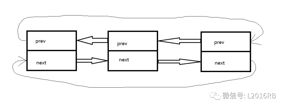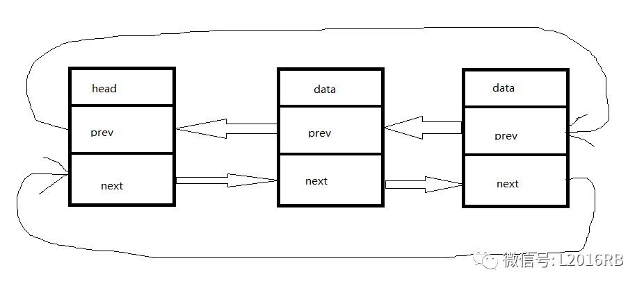 内核的链表结构也是双向循环链表,但内核的链表不包括数据域,如下图所示:
