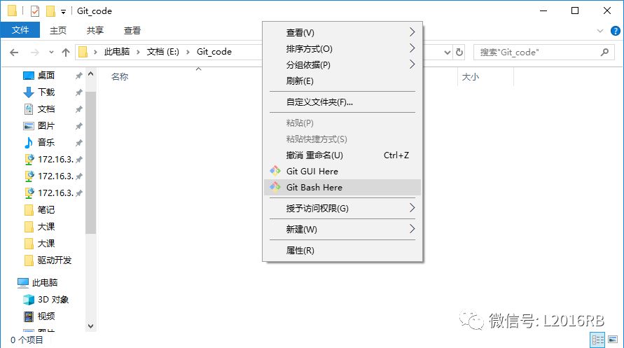 1、新建文件夹作为代码存放的目录,右键,点击git bash here