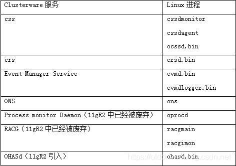 如果CRSD和EVMD出现异常,系统会自动重启这两个进程。但是如果CSSD进程异常,系统会立即重启。罗列Linux和Unix中各个服务所对应的进程如下: