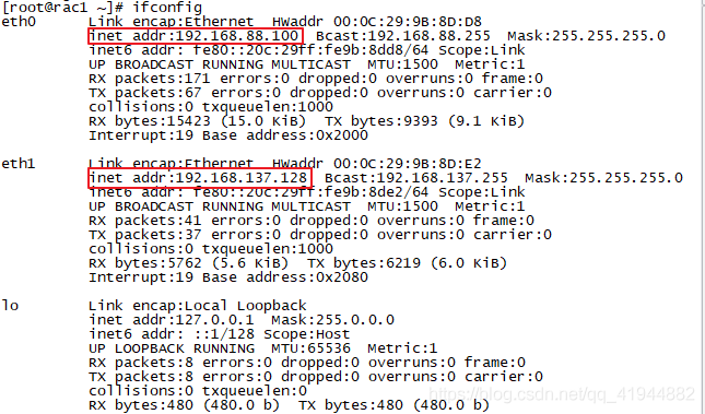 | Interface | RAC1 | RAC2 |