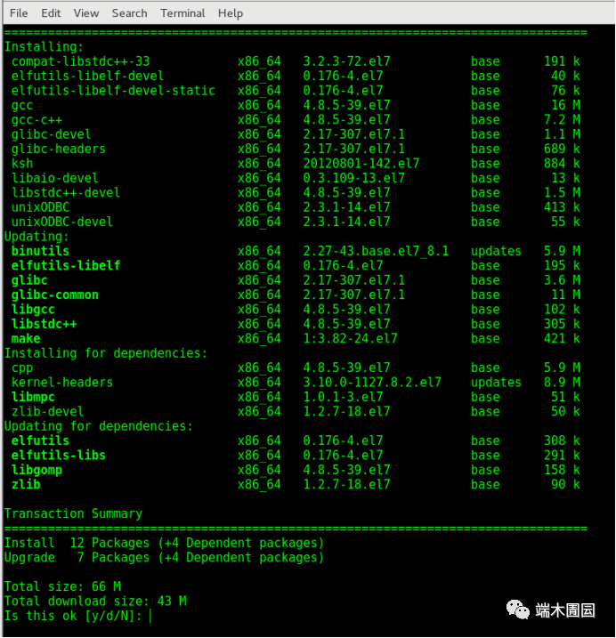 以下是按照需要依赖的安装包,通过 yum install {包名} 来验证是否安装,例如yum install binutils