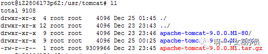 下载Tomcat9,将文件移动到apache-tomcat-9.0.0.M1.tar.gz移动到/usr/tomcat/下,并解压: