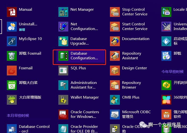 1、按住键盘上Windows键,打开开始菜单,找到Database Configuration Assitant并打开;