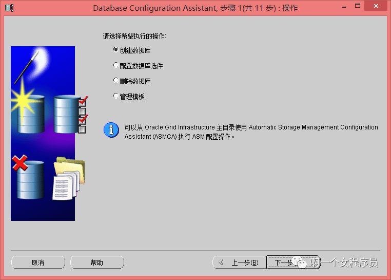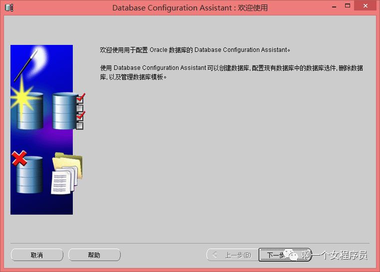 2、打开数据库配置助手Database Configuration Assitant,单击“下一步”;