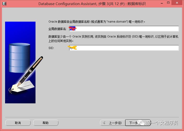 4、设置数据库的名称和实例名,两者可设置相同,也可以不同,单击“下一步”;
