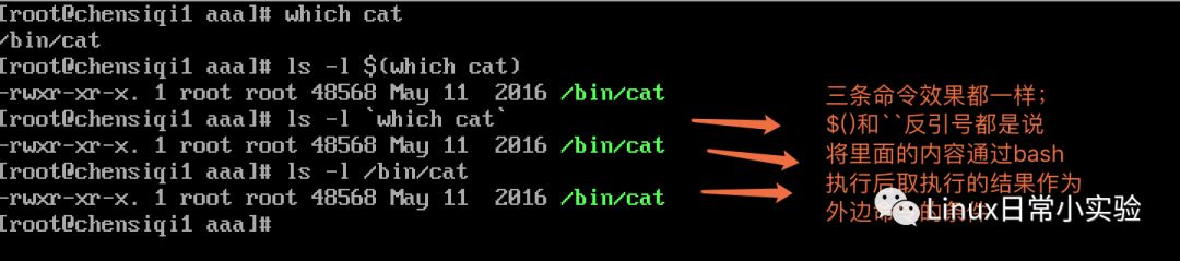 3.4.3 ``(esc下面)反引号 引用命令的结果,相当于$()